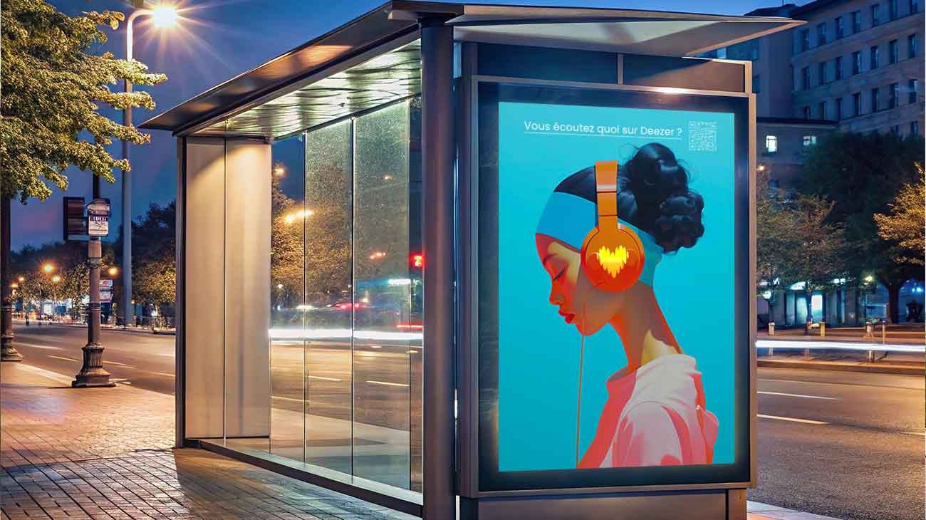L’objectif est de concevoir un visuel qui combine deux éléments : la première entité représentant une référence musicale, et la seconde incarnant un symbole de la culture musicale. Ces deux entités doivent être intégrées dans une composition visuelle cohérente avec l’univers et l’identité de Deezer.
