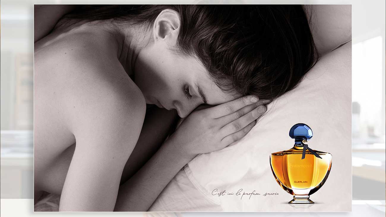 L’intention était de créer une image douce et poétique, en harmonie avec le raffinement du parfum. Approche minimaliste, seul le flacon, sans nom de fragrance. Un choix délibéré pour laisser la forme parler d’elle-même et installer une atmosphère onirique, où la sobriété sublime l’objet.