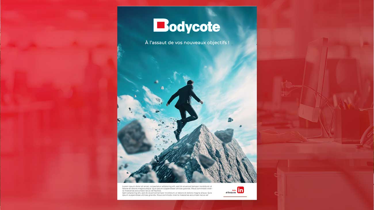 Ce type de composition aide à transmettre visuellement la notion de challenge relevé, de solution accessible et d’excellence technologique, tout en structurant le message pour une meilleure lisibilité et impact immédiat.